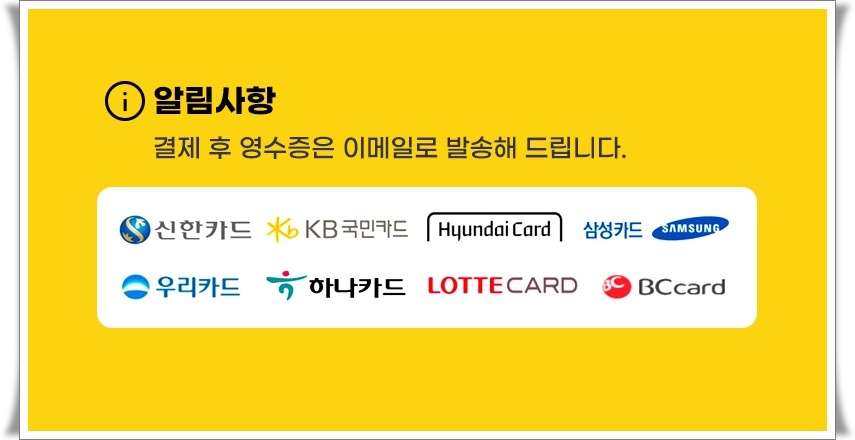 • 관공서, 학교, 대기업 등의 결제는 담당자와 협의 후 진행해 주시기 바랍니다.