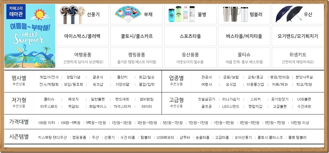고강동판촉물 제작 업체는 추천테마상품 가격대별 행사별 업종별 인기아이템 등