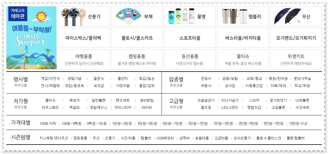이천판촉물 제작 업체는 추천테마상품 가격대별 행사별 업종별 인기아이템 등