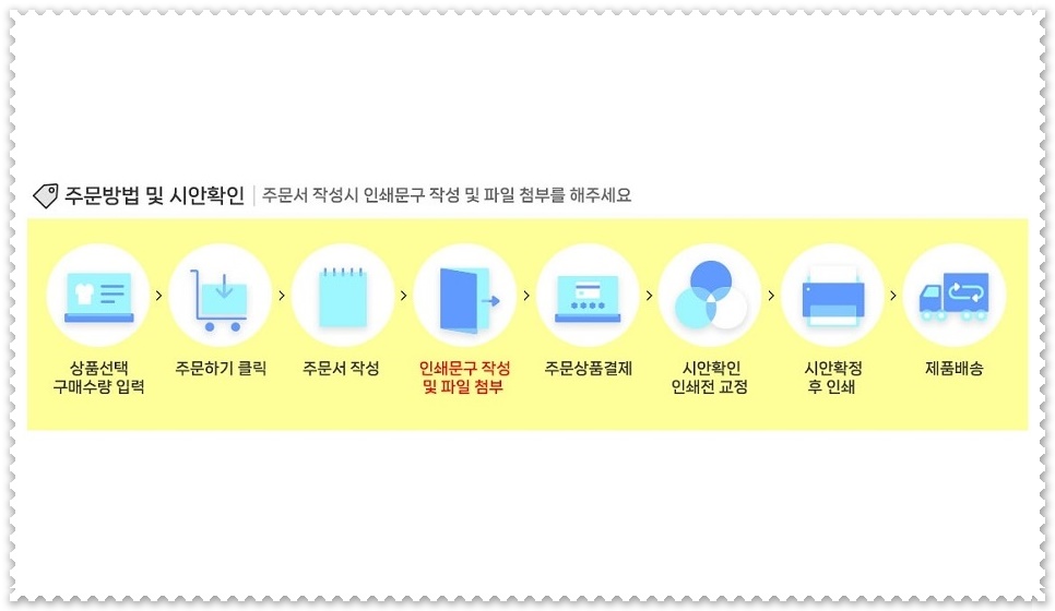 • 인쇄를 하시는 경우, 고객님이 보내주신 원고 및 도안을 기본으로 시안을 제작하고, 정확성을 기하기 위해 고객님과 재확인 후 제작이 들어갑니다.