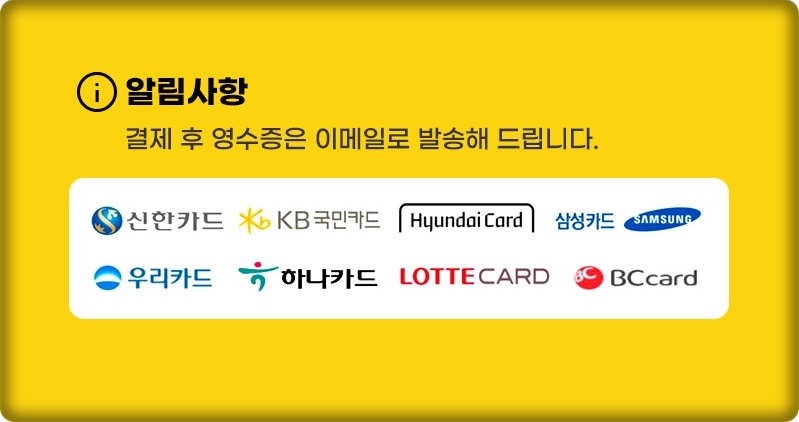 • 관공서, 학교, 대기업 등의 결제는 담당자와 협의 후 진행해 주시기 바랍니다.
