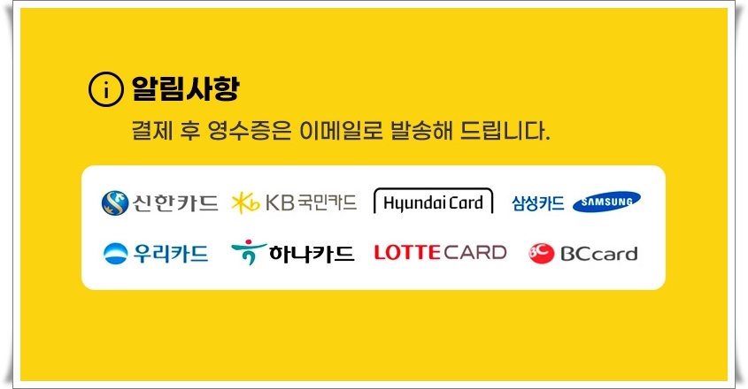 결제 후 영수증은 메일로 발송해 드립니다.