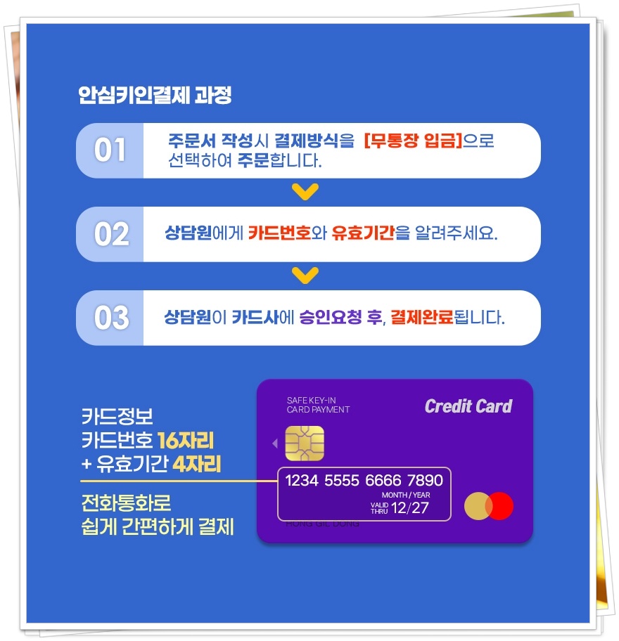 결제전 디자인시안을 먼저 확인 또는 구매 옵션이 복잡한 경우에는 유사 상품 검색한 뒤 무통장입금 결제방식을 선택후