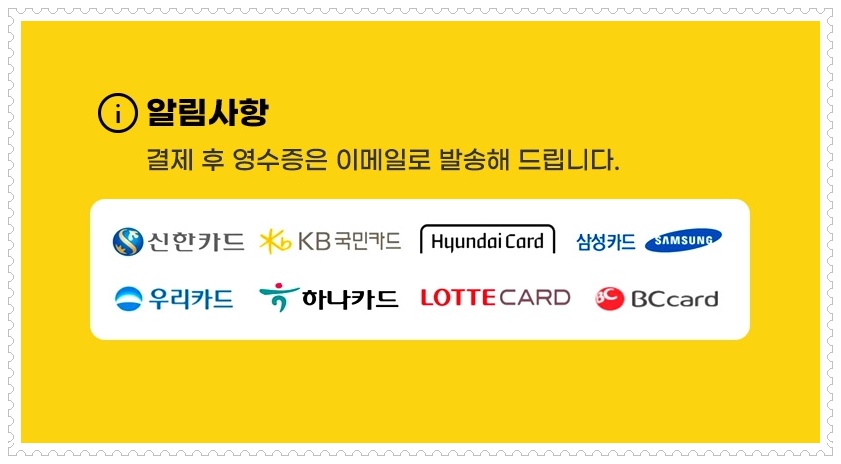 결제 후 영수증은 메일로 발송해 드립니다.