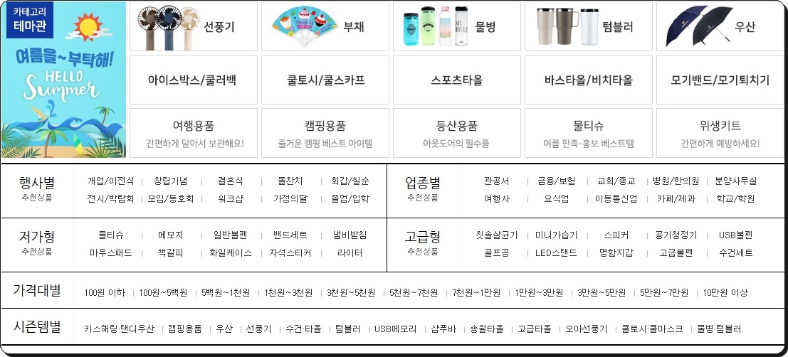 창성동판촉물 제작 업체는 추천테마상품 가격대별 행사별 업종별 인기아이템 등