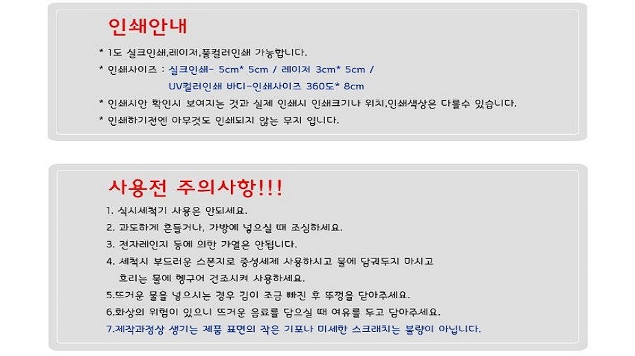 • 제품이나 주문 수량에 따라 인쇄비용이 발생할 수 있으므로 구매전 확인해 주시기 바랍니다.