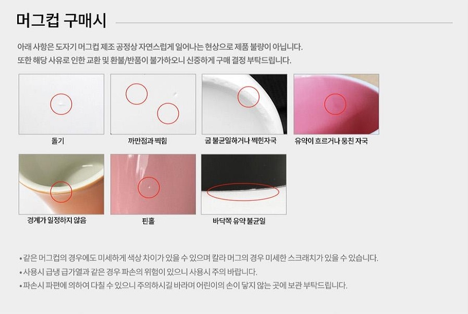 | • 주문제작형 제품, 인쇄물, 홍보용 스티커 부착 제품 등 재사용이 불가능하므로 고객 변심에 의한 반품은 불가능합니다. • 최종 확정된 시안에 따라 인쇄된 제품의 오타, 문구 착오에 대한 모든 책임은 고객에게 있으므로 꼼꼼하게 확인하시기 바랍니다. • 구매자의 부주의로 인해 상품의 가치가 상실된 경우 교환 및 반품이 불가능합니다.(단, 내용 확인 위한 포장 개봉은 예외) |